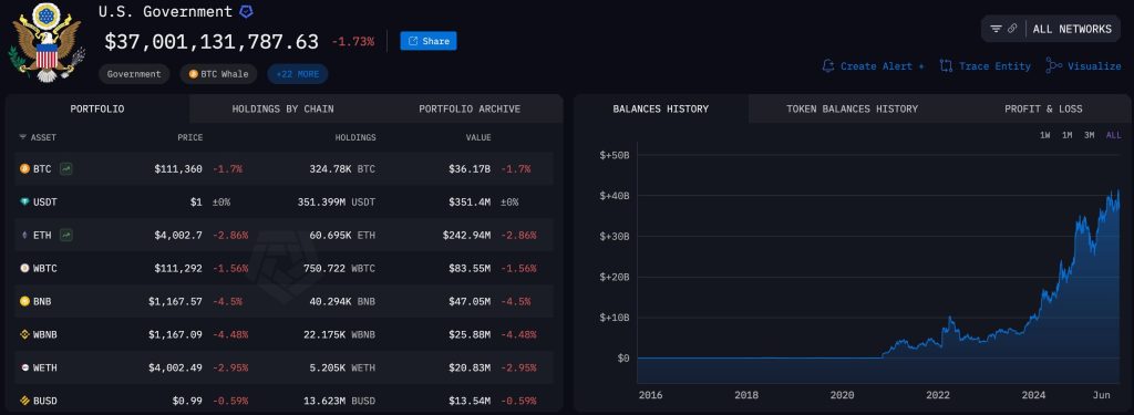Az Egyesült Államok Kormány tehát egyetlen hét alatt több mint 70 %-al növelte az U.S.A. kriptós eszközállományát. 346.017 Bitcoin. Masszív.