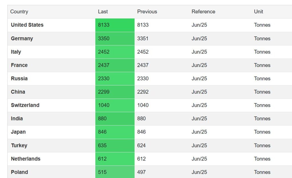 Időarányosan igen jól állnak, mert Lengyelország közel 67 tonna aranyat szerzett az elmúlt 1 év alatt (más források szerint csak idén!) – többet, mint bármely más ország a világon.
