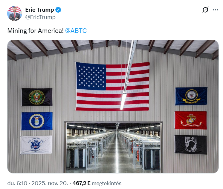 A dolog azért is érdekes, mert idén augusztusban a Trump családtagjai által támogatott Bitcoin-bányász cég, az American Bitcoin, 16299 Antminer U3S21EXPH egységből álló flottát vásárolt a Bitmaintől.