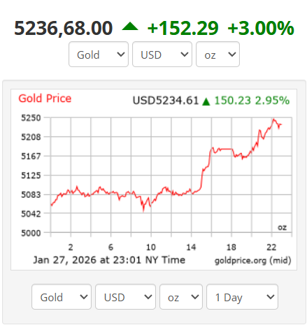 Tovább menetel az arany árfolyama. 5000 dollár után 5200 dolláros árfolyamon jár.